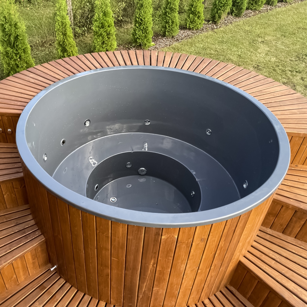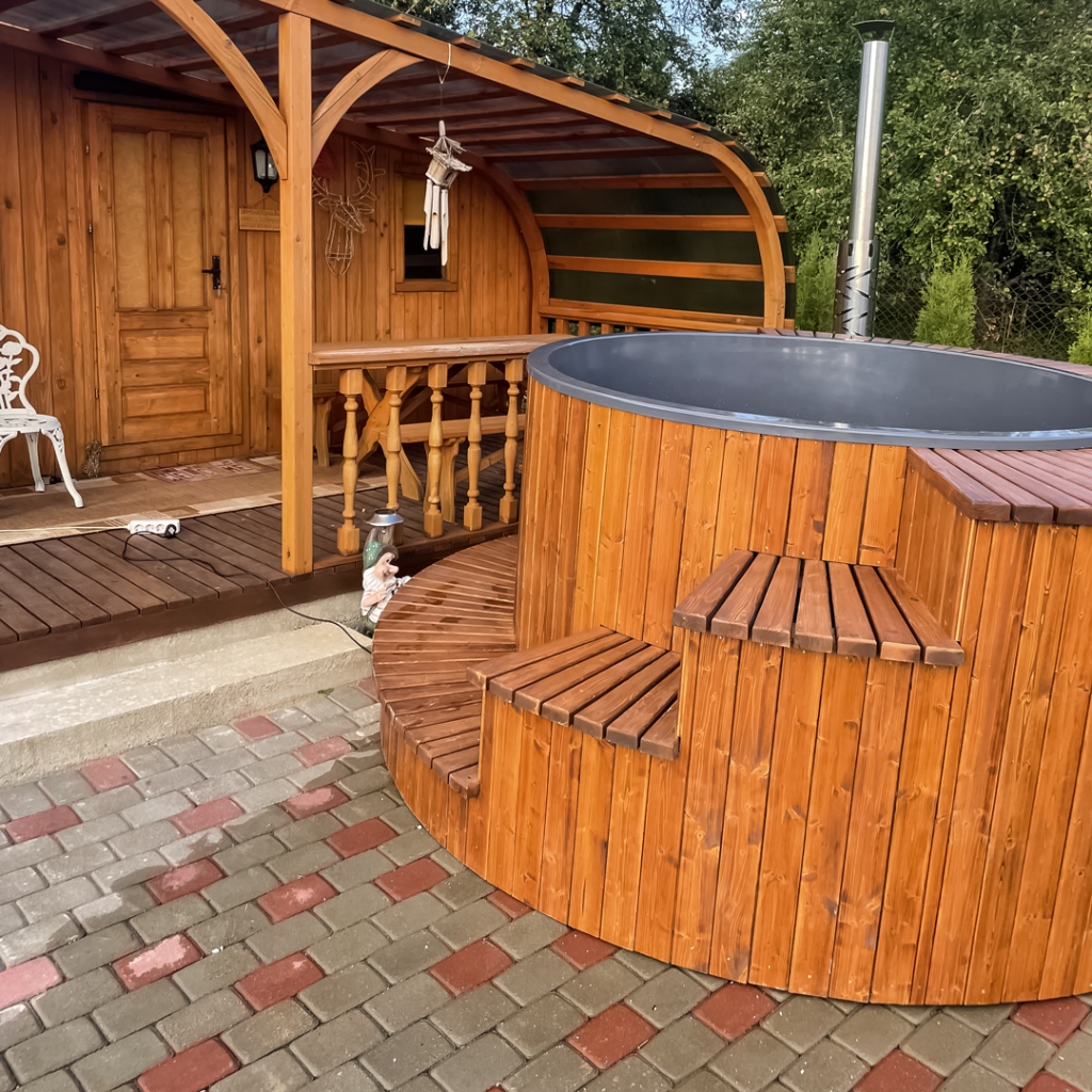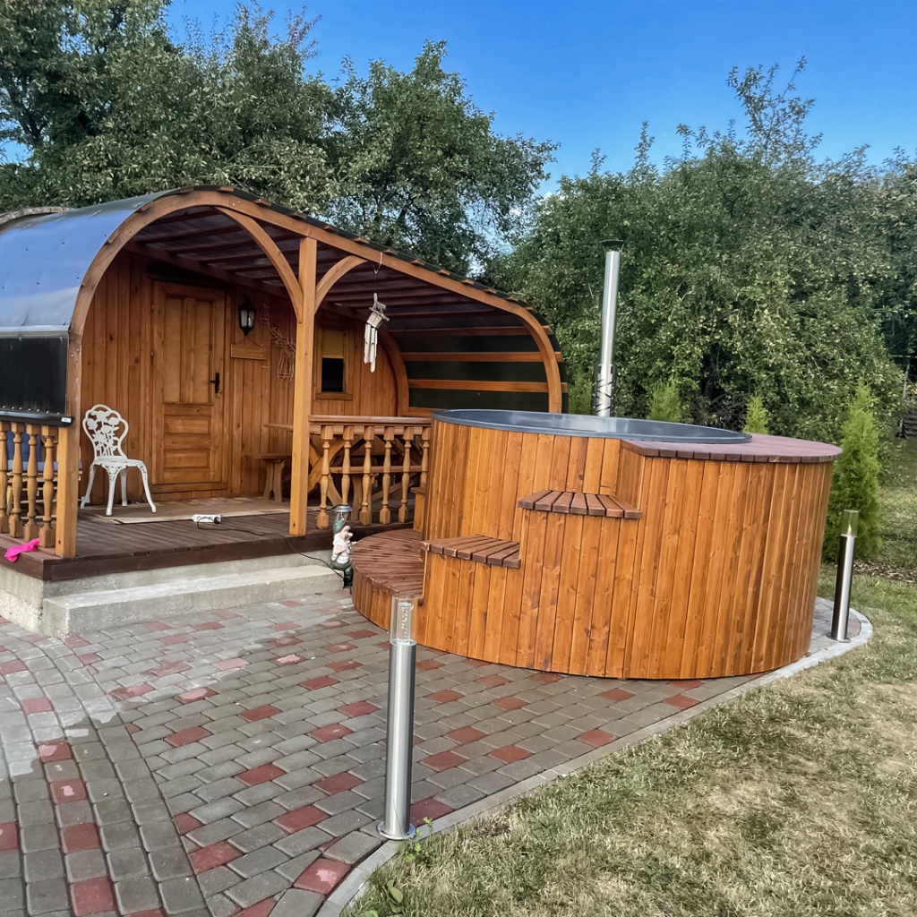 We make tubs according to individual order! Up to 6 people can sit in the hot tub at the same time. We offer a wide range of hot tub equipment options, a 2-year warranty after purchase, an individual approach to each project, and the option to complete the purchase also through leasing.