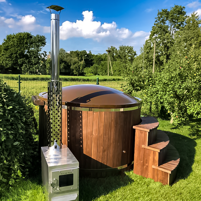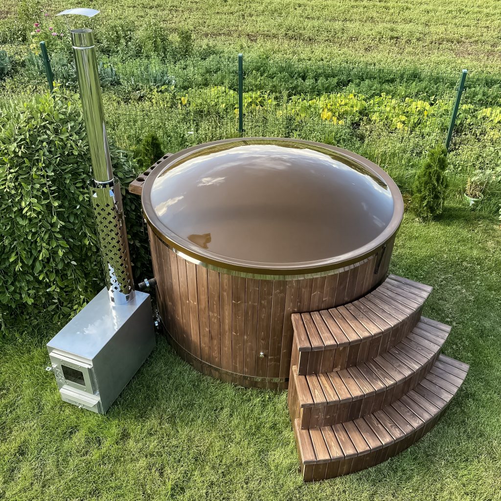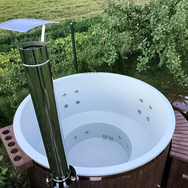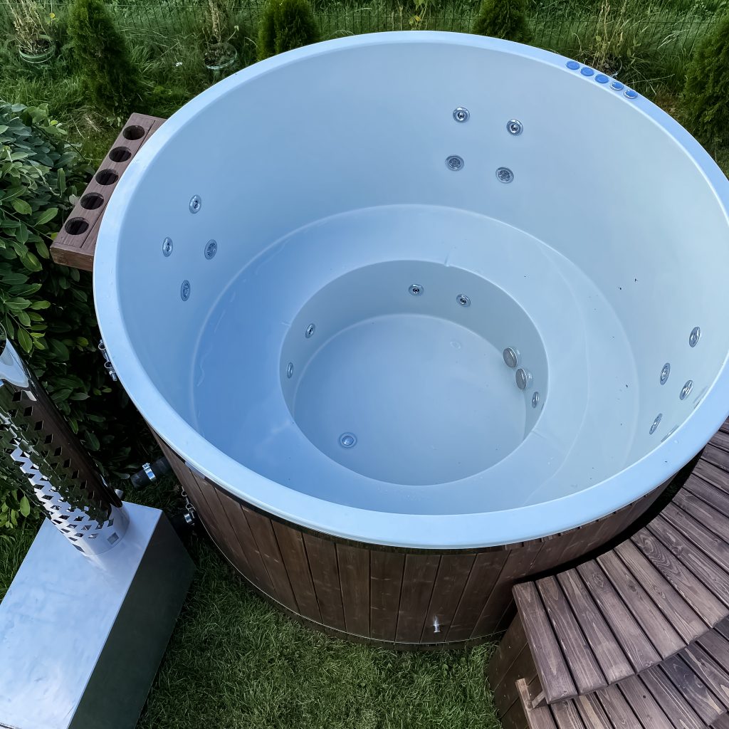 Hot tub with external stove, 26-jet hydromassage, integrated LED