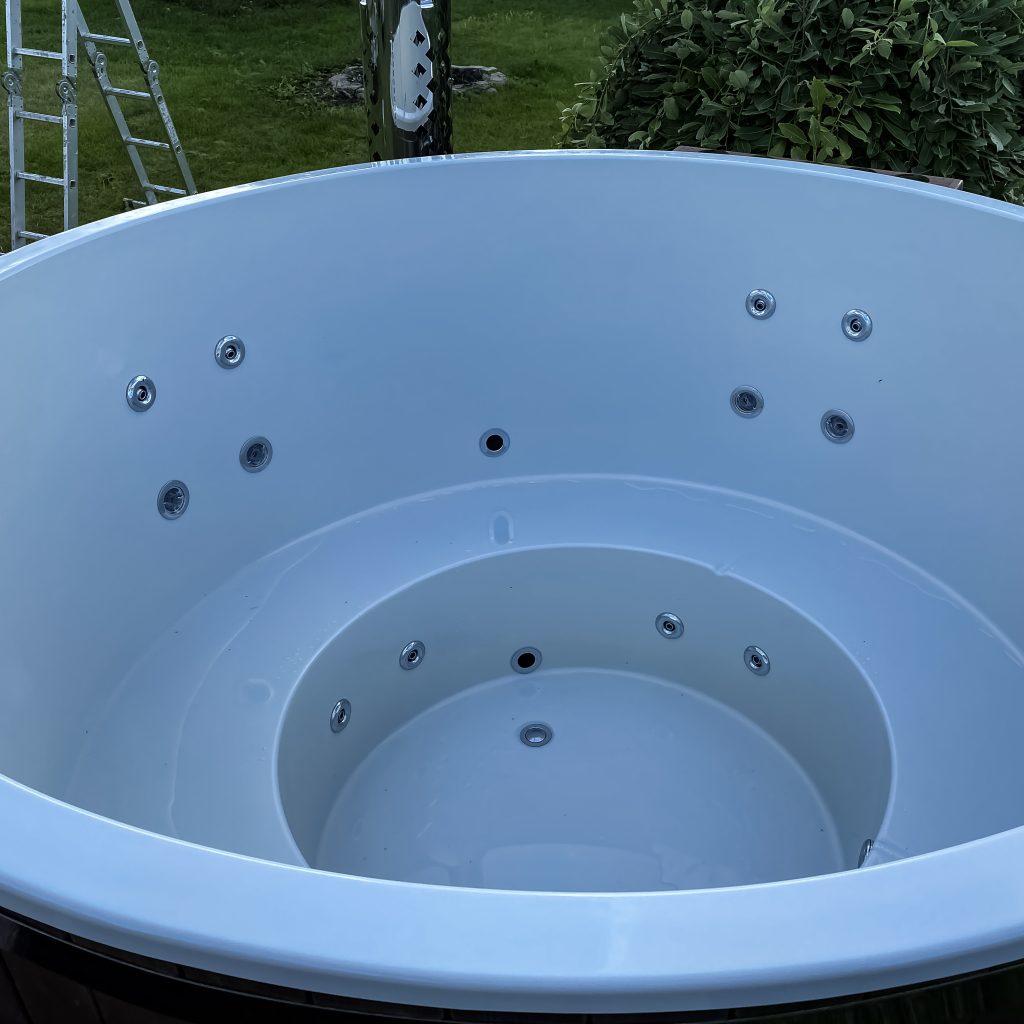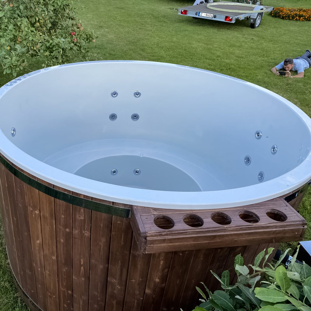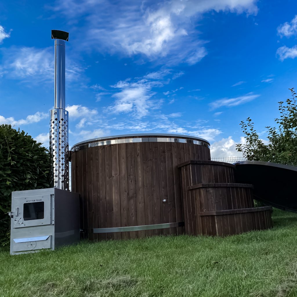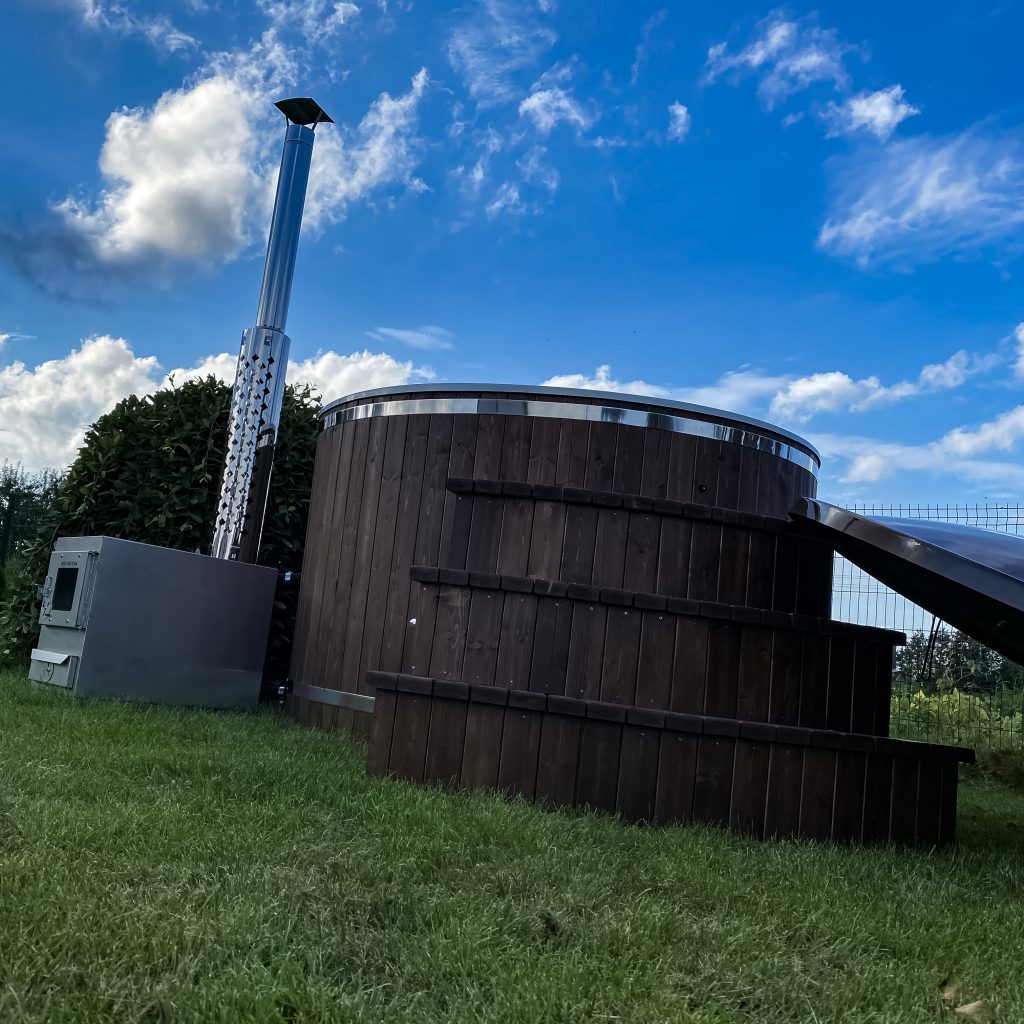 Hot tub with external stove, 26-jet hydromassage, integrated LED