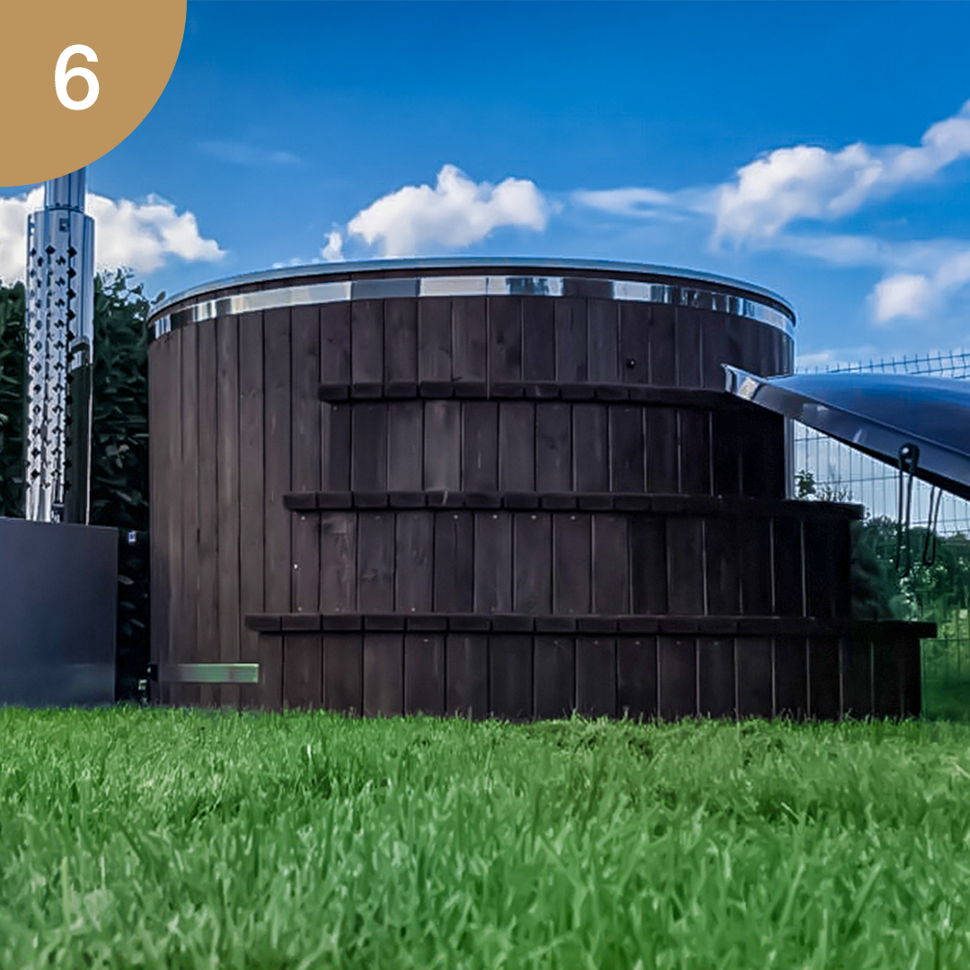 We make tubs according to individual order! Up to 6 people can sit in the hot tub at the same time. We offer a wide range of hot tub equipment options, a 2-year warranty after purchase, an individual approach to each project, and the option to complete the purchase also through leasing.