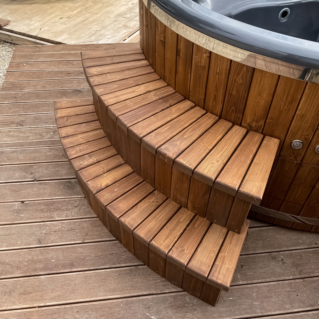 We make tubs according to individual order! Up to 6 people can sit in the hot tub at the same time. We offer a wide range of hot tub equipment options, a 2-year warranty after purchase, an individual approach to each project, and the option to complete the purchase also through leasing.