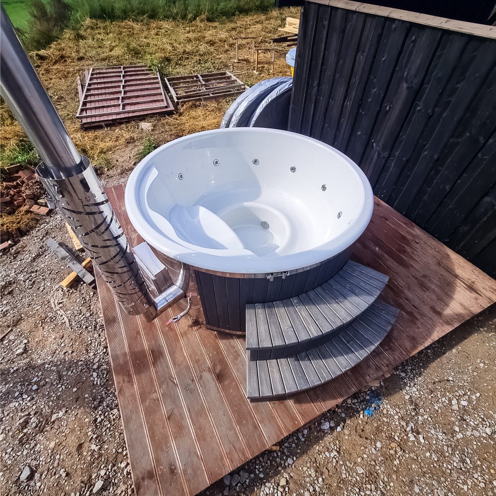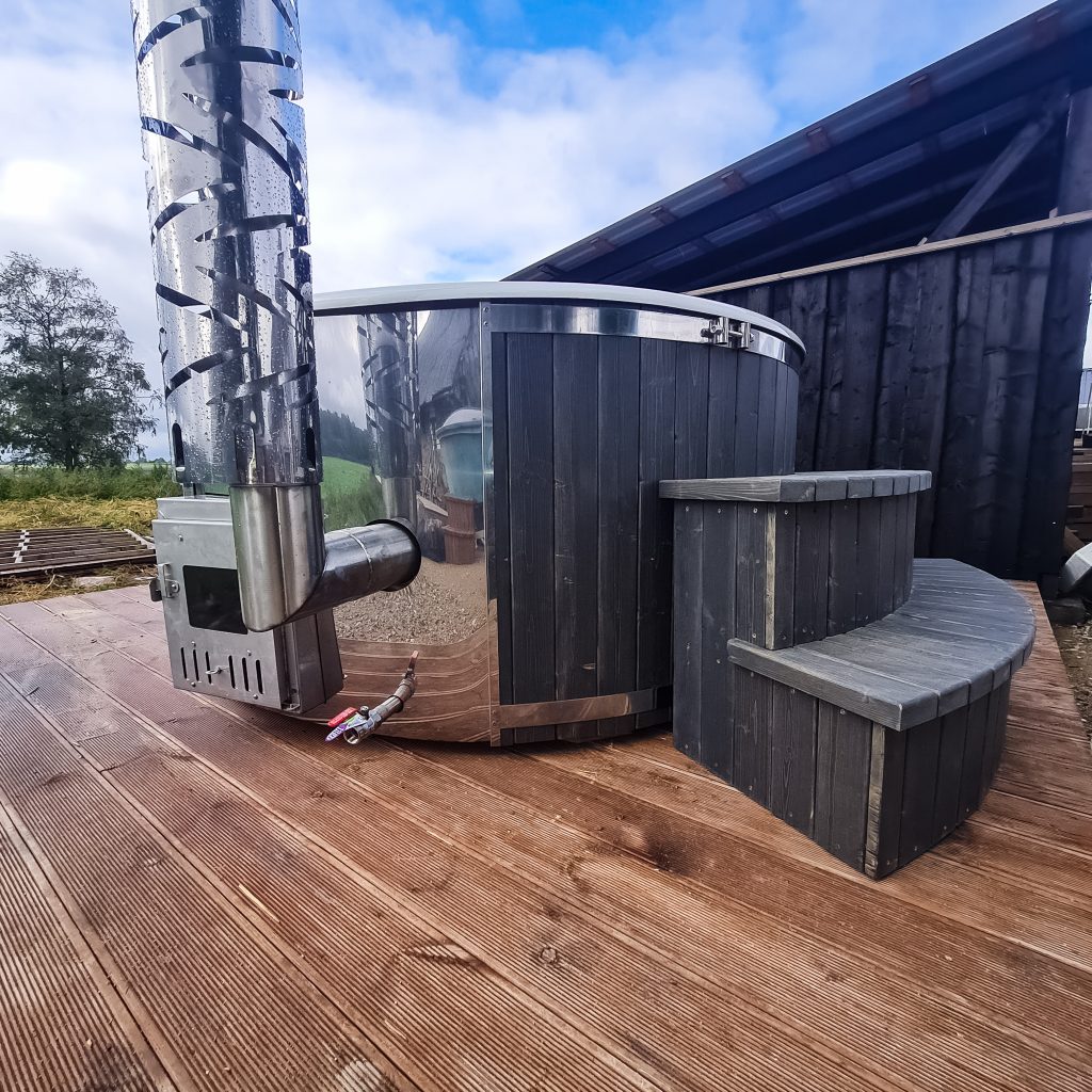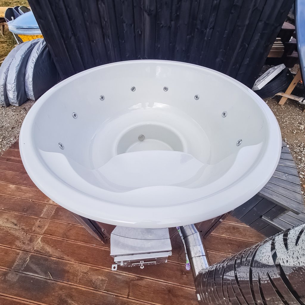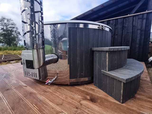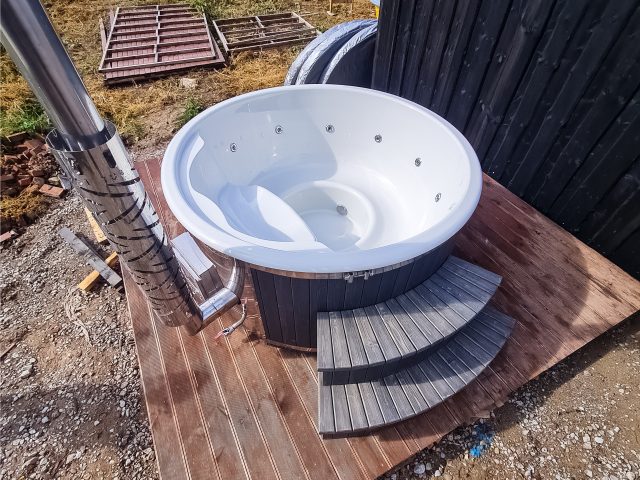 Hot tub with integrated stove, LED lighting, 8-jet hydromassage