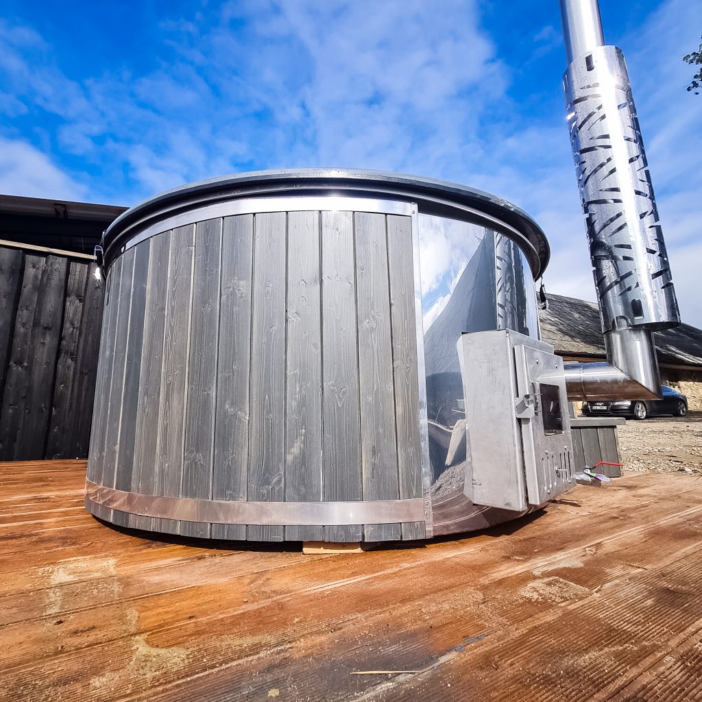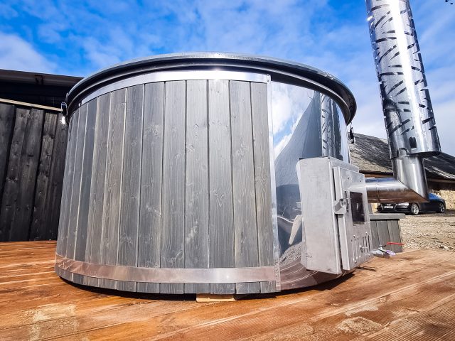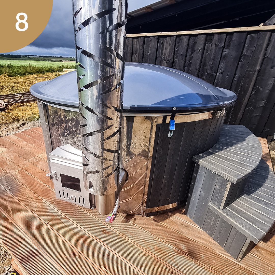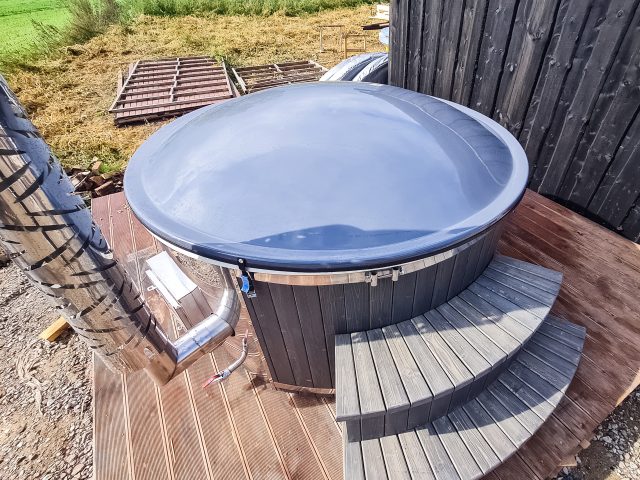 Hot tub with integrated stove, LED lighting, 8-jet hydromassage