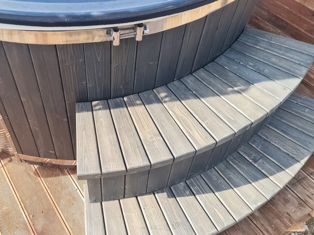 We make tubs according to individual order! Up to 6 people can sit in the hot tub at the same time. We offer a wide range of hot tub equipment options, a 2-year warranty after purchase, an individual approach to each project, and the option to complete the purchase also through leasing.