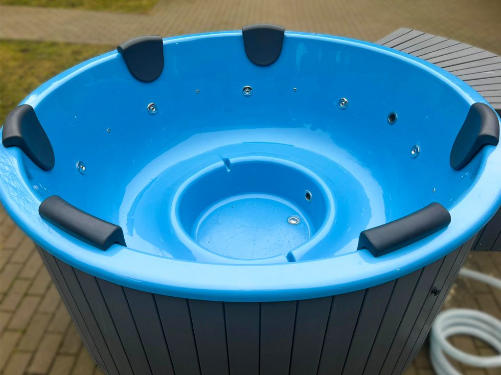 Kubls ar ārējo krāsni, ¼ apkļaujošās kāpnes, LED rgb apgaismojums, hidromasāžas sistēma Kas ietilpst tieši šī kubla aprīkojumā un cenā skatiet sadaļā ”Aprīkojums”.