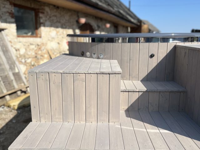 - Apdare – egles spundētie dēļi (impregnēti, krāsoti)
