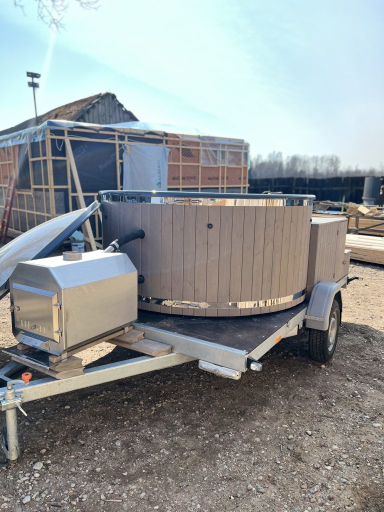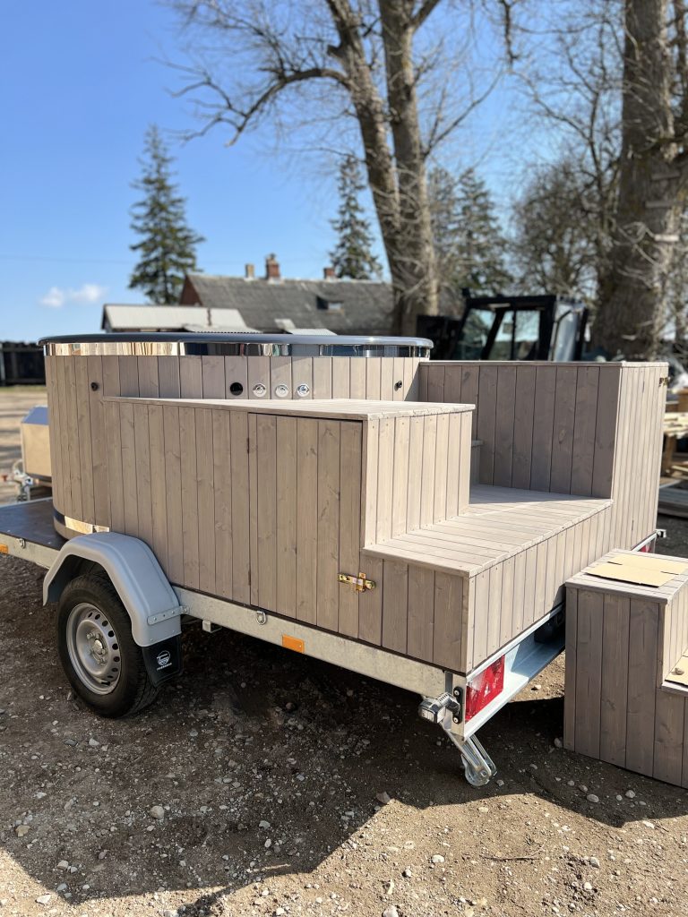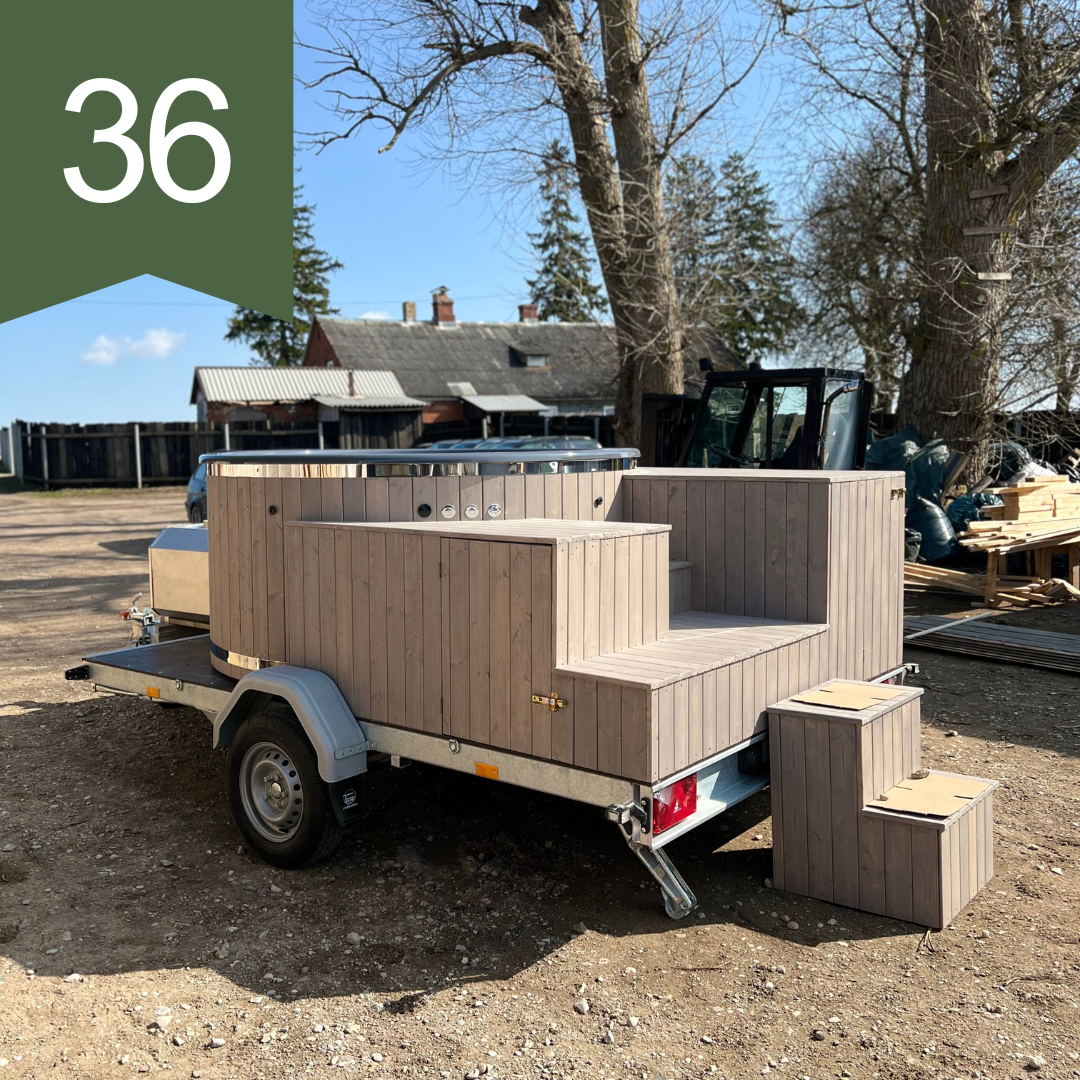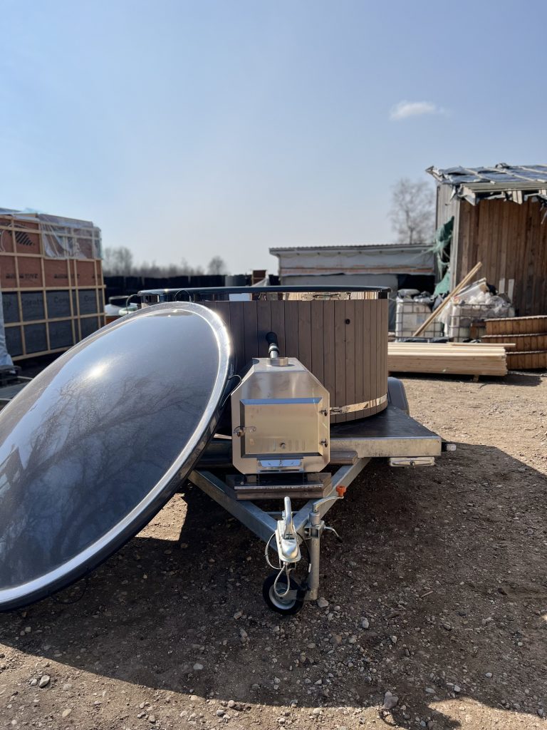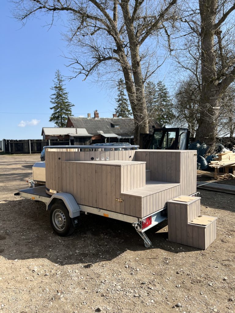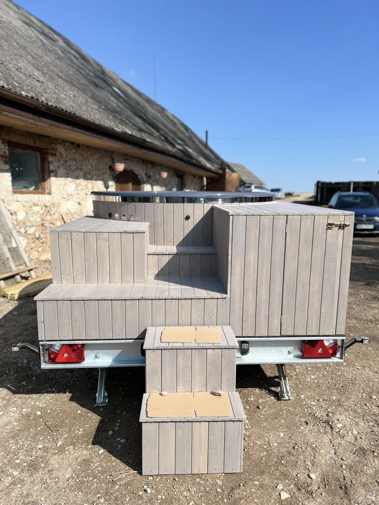 Pārvietojams kubls ar ārējo krāsni, lielajām kāpnēm, piekabi…