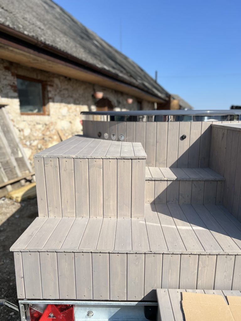 - Apdare – egles spundētie dēļi (impregnēti, krāsoti)