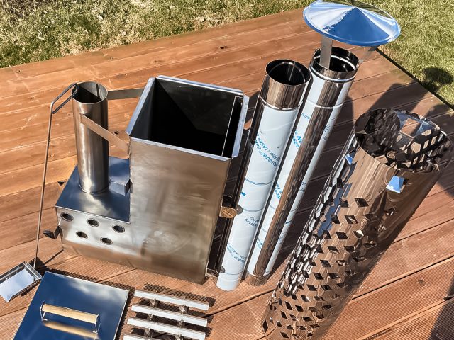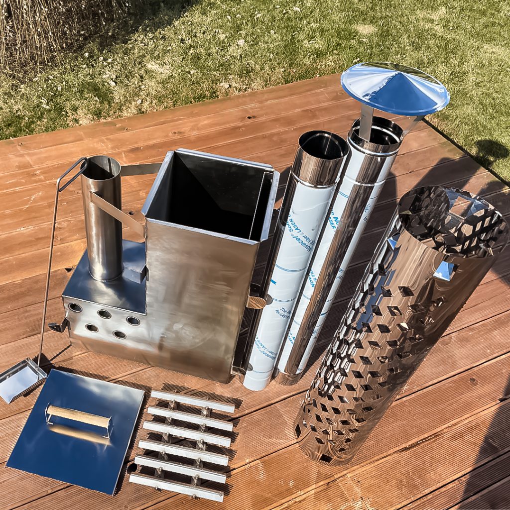 We offer a complete set of stainless steel stoves for hot tubs that are heated from above.