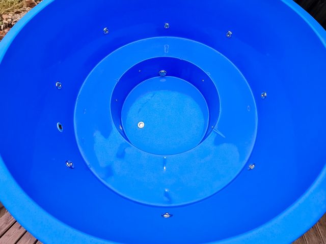- Stiklašķiedras odere, izmēri – 200 cm diametrs, 111 cm dziļums